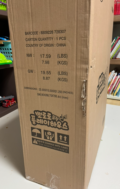 저희는 그냥 일반 드라이버로 나사를 하나 하나 손으로 조립 했는데 전동 드라이버로 하면 더 쉽고 시간도 더 단축 될 것 같아요! (참고해주세요‼️) 그리고 건전지 C 별도로 3개 준비해주세요! 본체 부분에 건전지 3개 들어가요^^* 그래도 조립은 쉬운 편이고 설명서를 보고 쉽게 조립 할 수 있어요! 아가들이랑 뽀로로 문짝을 이용해서 재미있게 놀이하고 있어요. 포장 안 쪽 박스가 찢어져서 왔는데 그래도 안에 구성 물건들은 깨진부분 없이 잘 배송 되었습니다! 잘 사용할게요.