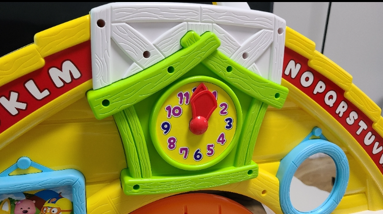 다만ㅋㅋ 처음에 공이랑 시계, 설명서, 나사 등이 들어있는 작은 박스가 따로 있는지 모르고 구성품이 부족하다며.... 불량이 왔다고 짜증 냈었는데 알고보니 박스 밑 바닥에 따로 있더라고요 제품 박스 밑에 작은 박스가 따로 있으니 꼭! 확인해보세요. 힘겹게 완성하고 나서 조카한테 보여주니까 적응할 시간도 없이 바로 진짜 너무!! 행복해하면서 혼자 앉아서 한참을 놀고 있네요.