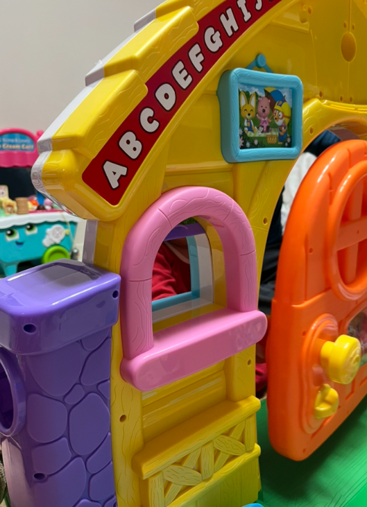 아직 기어 다니지는 못해도 대문 바로 앞에 앉아 변기 위쪽에 달려있는 바스락거리는 휴지랑 뽀로로 음성과 동요가 나오는 전화기를 제일 좋아해요 기어 다니기 시작하면 문짝 앞뒤로 왔다 갔다도 하고 시계놀이도 하고 공놀이도 하면서 더 다채롭게 즐겨주겠죠 아! 그리고 C타입 건전지가 3개 필요한데 처음부터 안 들어있으니까 꼭 같이 준비해 주세요 :)